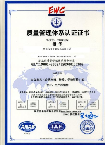 质量管理体系认证 发布时间: 2017-02-22 16:21:17 发布网站: 中国家具招标网