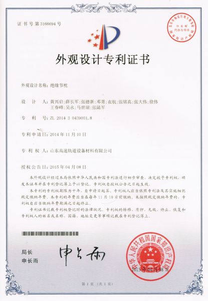 外观设计专利证书 发布时间: 2017-06-01 20:25:05 发布网站: 中国家具招标网