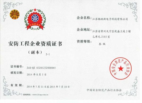 安防工程企业资质证书